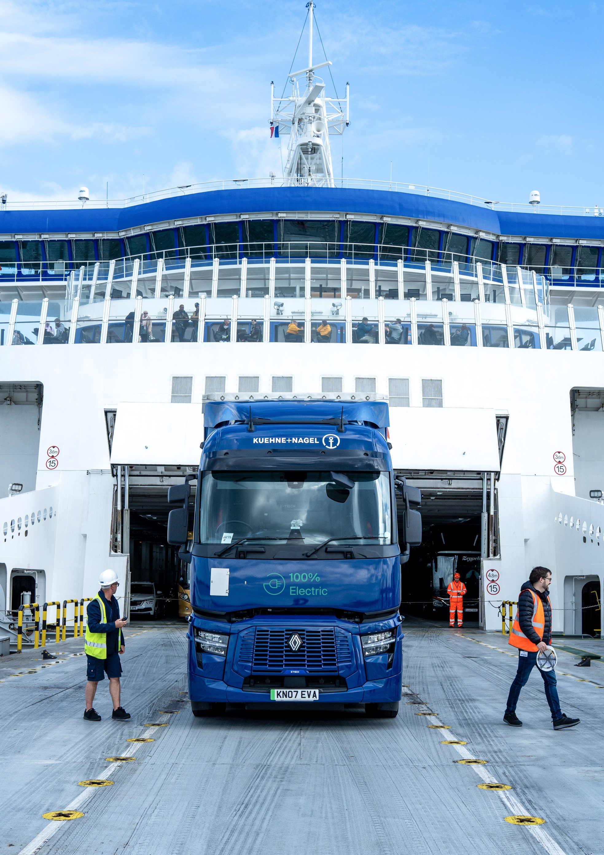 Kuehne+Nagel has successfully transported freight from the UK to France in a Renault Trucks E-Tech T via ferry. The full electric truck completed the journey aboard a P&O Ferries hybrid vessel, marking a major step forward in the decarbonisation of freight transport.