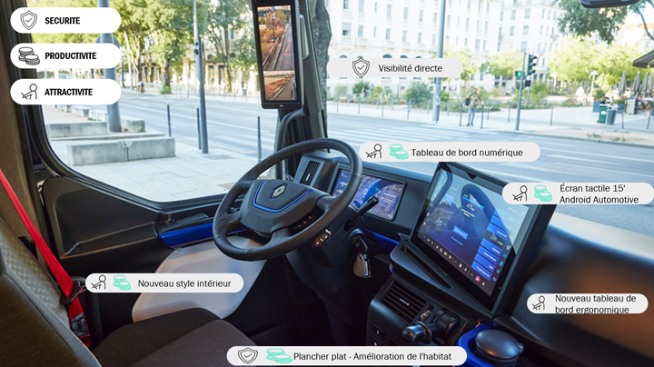 To ensure that this vehicle blends into the urban landscape perfectly and with a view to enhancing both the comfort and the self-esteem of the driver, Renault Trucks designers have completely redesigned both the exterior lines of the truck and the interior of the cab.